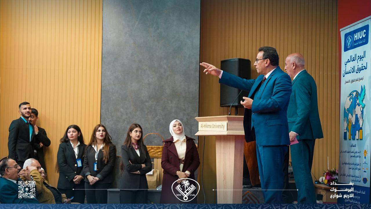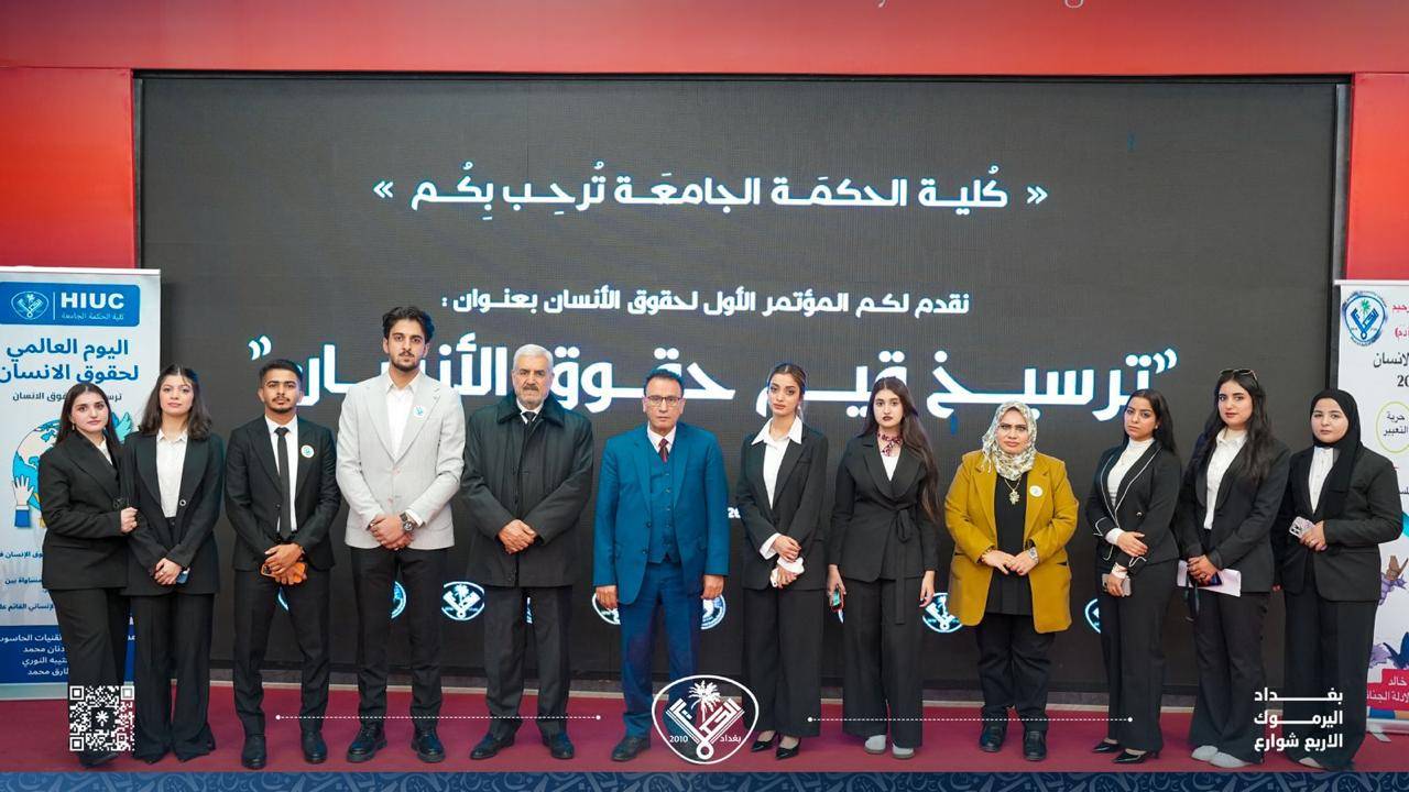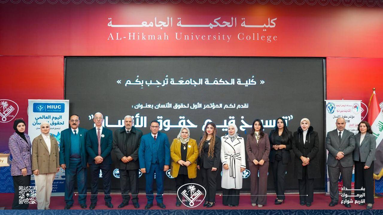 اليوم العالمي لحقوق الإنسان يُعد مناسبة دولية مهمّة للتذكير بكرامة الإنسان وحقوقه الأساسية التي لا يمكن التنازل عنها. وانطلاقًا من مسؤوليتها الأكاديمية والمجتمعية، تقيم كلية الحكمة الجامعة المؤتمر الأول لحقوق الإنسان احتفاءً بهذه المناسبة، وبرعاية السيد عميد كلية الحكمة الجامعة المحترم